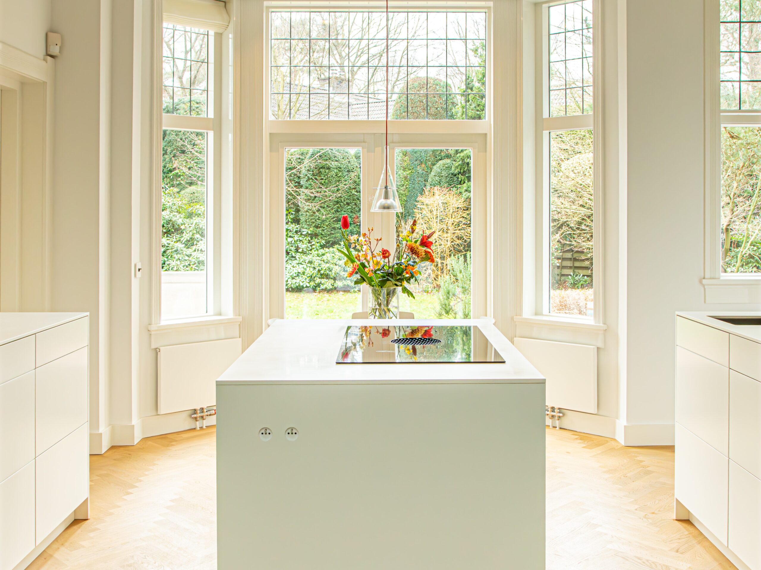 Specifically for kitchens, BLT has developed the Fynez custom-made plinth, a bespoke splashback positioned above the countertop with integrated wall sockets. By seamlessly mounting the Fynez Solid Surface plinth onto the worktop, you achieve a sleek, uniform finish. Fynez offers maximum flexibility and customization, adapting to any kitchen design.